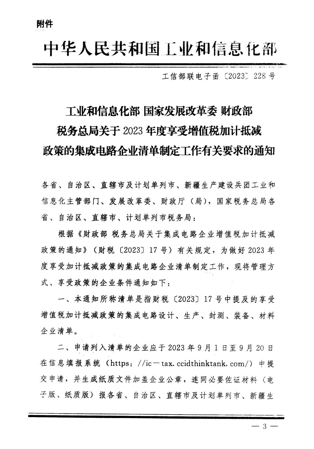關(guān)于貫徹落實(shí)《關(guān)于2023年度享受增值稅加計(jì)抵減政策的集成電路企業(yè)清單制定工作有關(guān)要求的通知》的通知